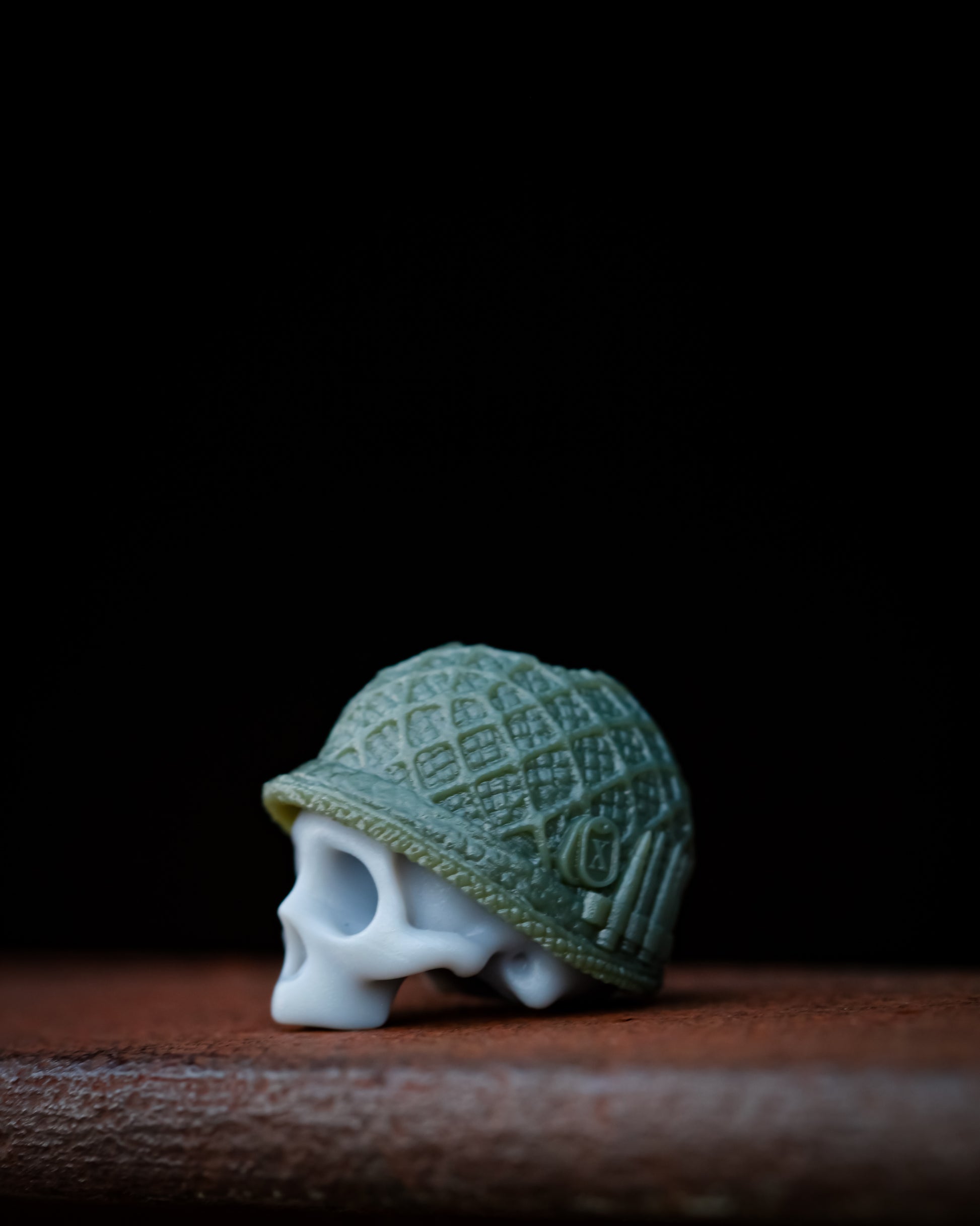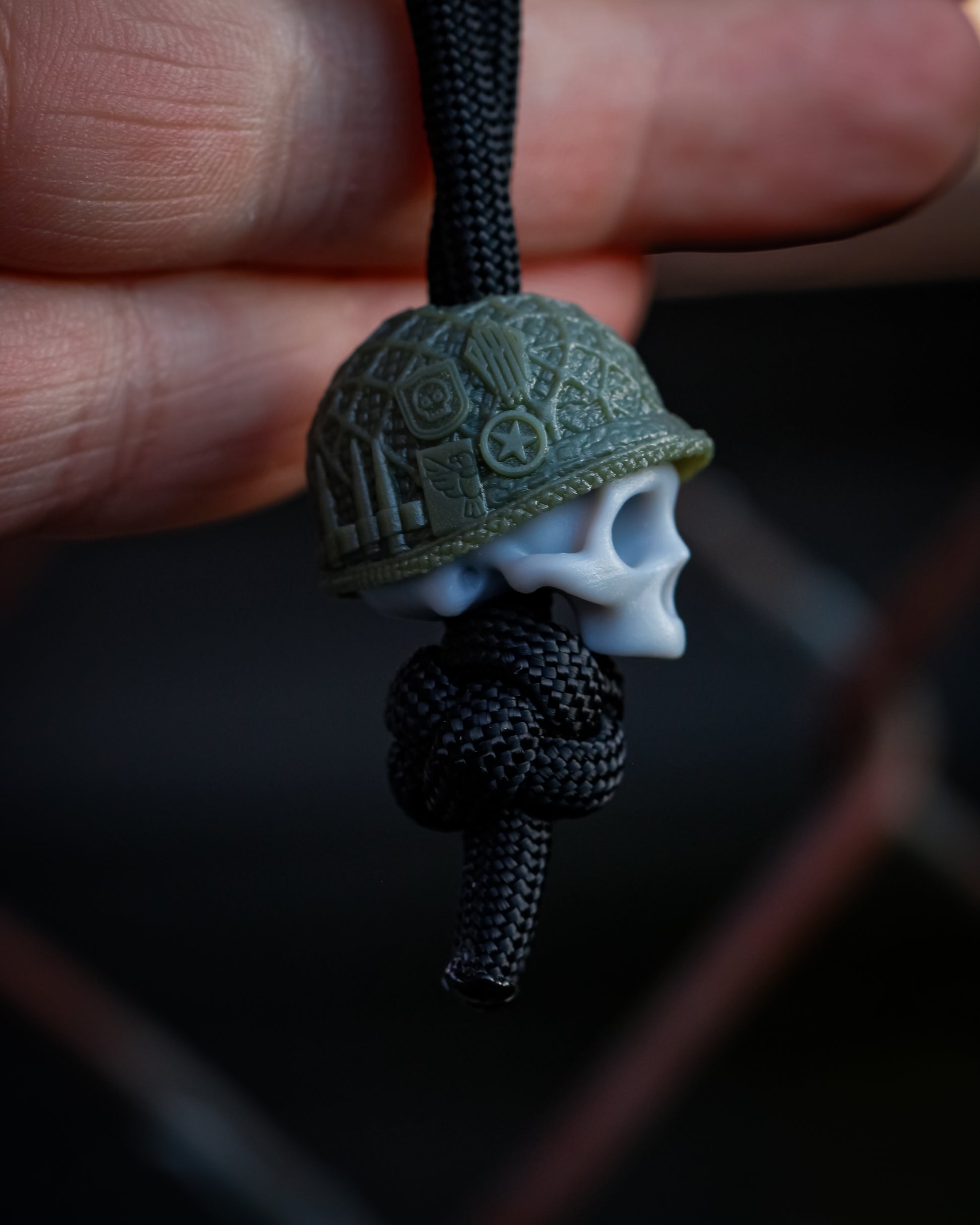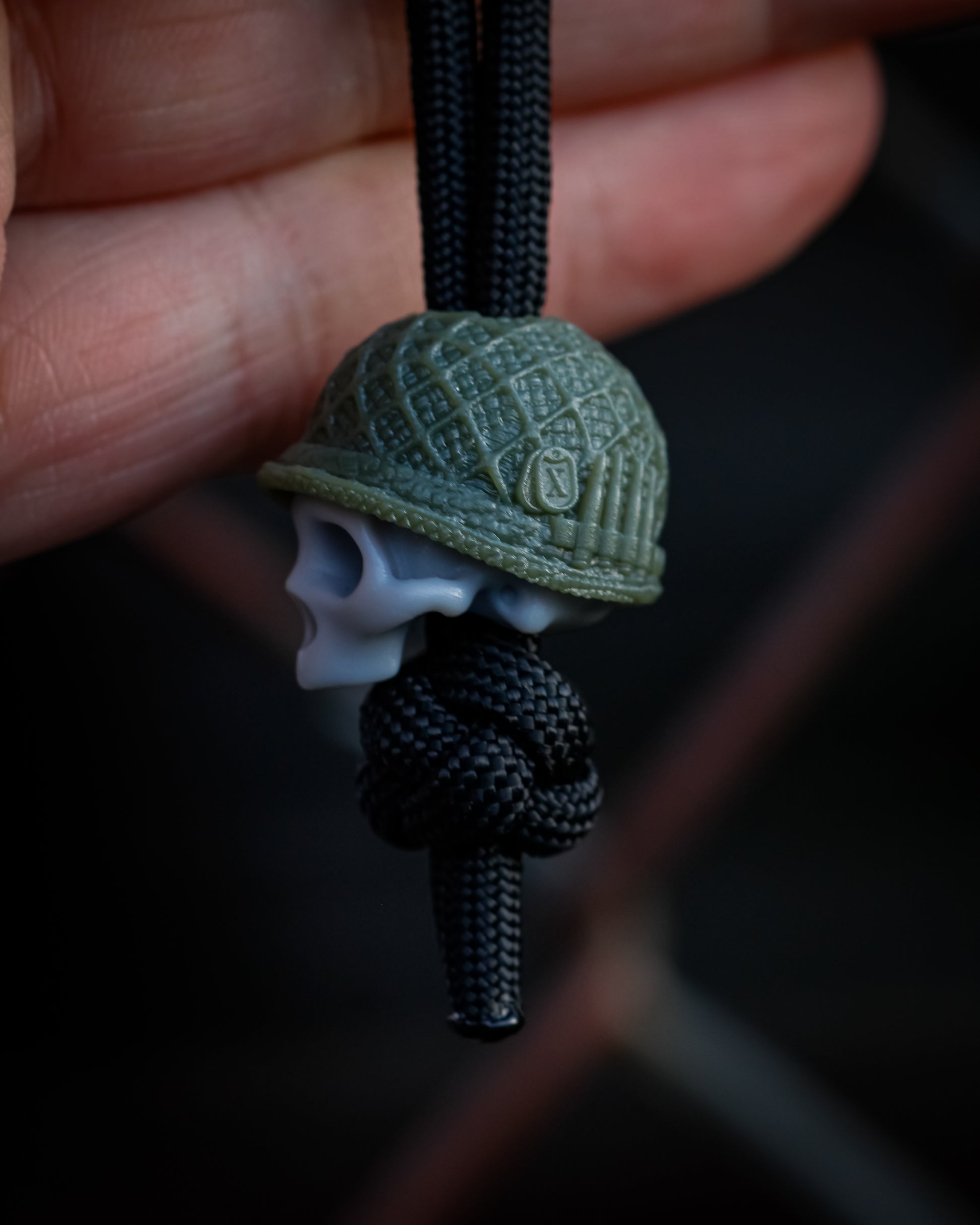 The Army Skull marches in with grit, grime, and a whole lot of attitude. A mashup of Riot Squad’s signature edge and Postmortem Plastics’ wild detail work, this bead is built for those who carry their battles on their lanyards, zippers, and EDC setups.